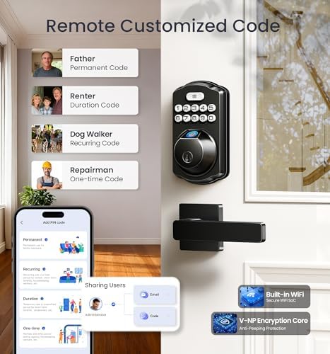 Sponsored Ad - VE012W-L Built-in WiFi Fingerprint Smart Lock with Level Handle Set, App Remote Control, Digital Backlit Keypad Deadbolt, Keyless Entry for Front Door, Voice Assistant, Auto Lock, Matte