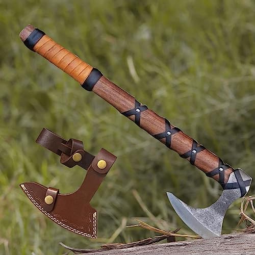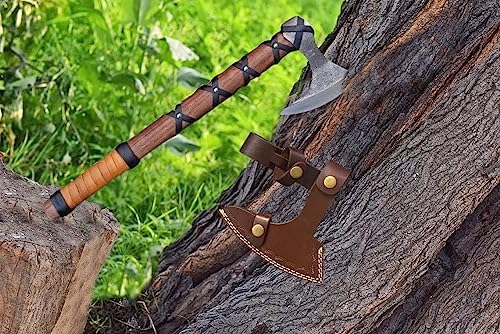 Viking Axe of Ragnar Lothbrok Hunting Axe Hand-Forged High Carbon Steel Sharp Blade Bearded Viking Axe Shaft Rosewood Handle Hatchet Camping, Valhalla Axes, Authentic Medieval Norse Axe, (VK-Axes-03)