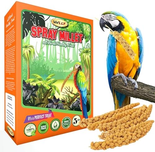 5LBS GMO-Free Sun Dried Spray Millet - Original Bird Treat Millet for Parakeets, Cockatiels, Finches & More - Non-GMO, High in Amino Acids, Easy Storage, Tasty & Healthy Bird Snacks (5 lbs)