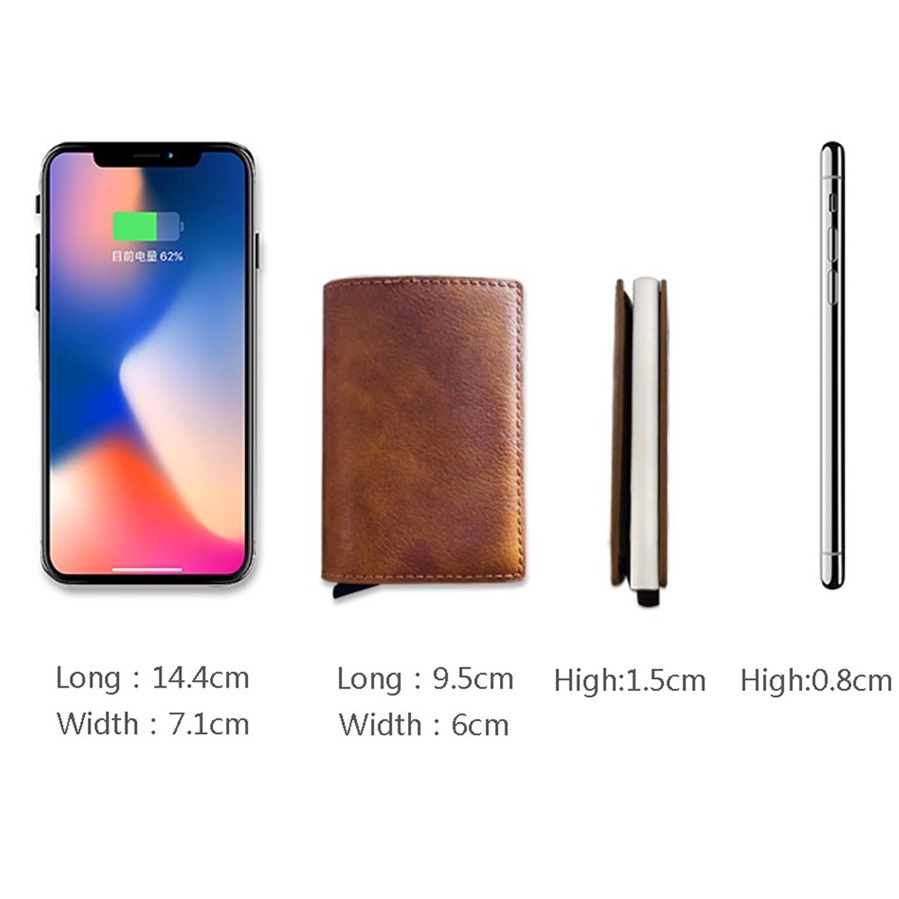 Wallet For Men PU Leather Rfid Mini Slim Card Holder Auto POP Up Aluminum Box