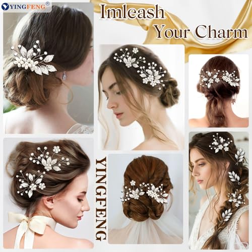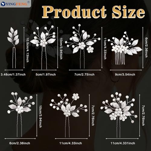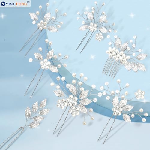 7 Pcs Silver Bridal Wedding Hair Accessories, YINGFENG Hair Pins for Women and Crystal Pearl Hair Clips,Flower Girl Hair Accessory, Hair Pins for Bride, Bridesmaids and Girls