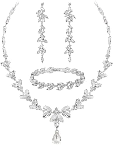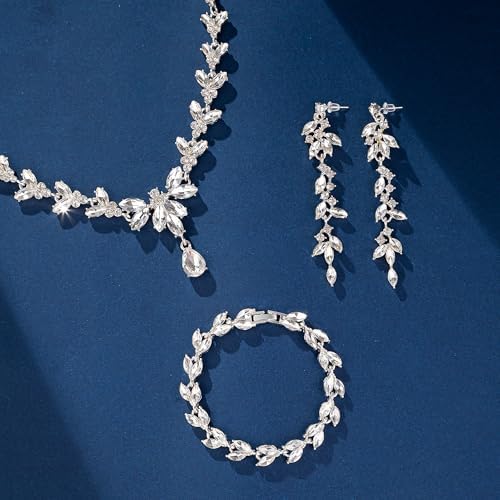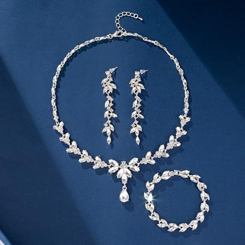 Sponsored Ad - Wedding Jewelry Sets for Bride Bridesmaid Bridal Jewelry Set for Women Wedding Crystal Necklace Earrings Bracelet Set for Party Prom Jewelry