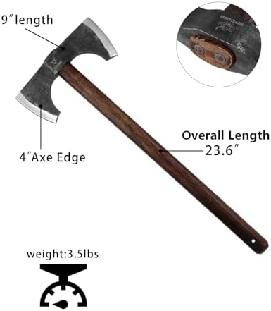 Splitting Axe, 23.6 Inch Double Bit Axe, Beech Handle with Leather Sheath, for Chopping, Splitting Wood or Axe Throwing