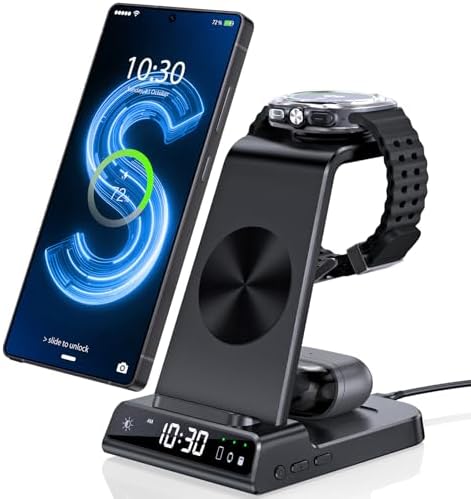 Sponsored Ad - Wireless Charger for Samsung Charging Station with Clock for Samsung Galaxy S25 Ultra/S24 Ultra/Z Fold 7/6/Flip7/Bud, 3 in 1 Android Charging Station, Watch Charger for Samsung Galaxy W