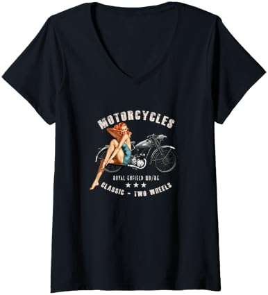 Womens Pin up Girls Royal Enfield WDRE Vintage Motorcycle WW2 V-Neck T-Shirt