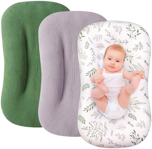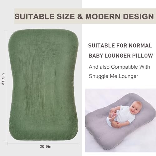 Muslin Baby Lounger Cover for Snuggle Me Lounger,3 Pack 100% Cotton Newborn Baby Lounger Pillow Covers,Soft and Breathable Baby Nest Slipcover for Boys Girls (Covers Only