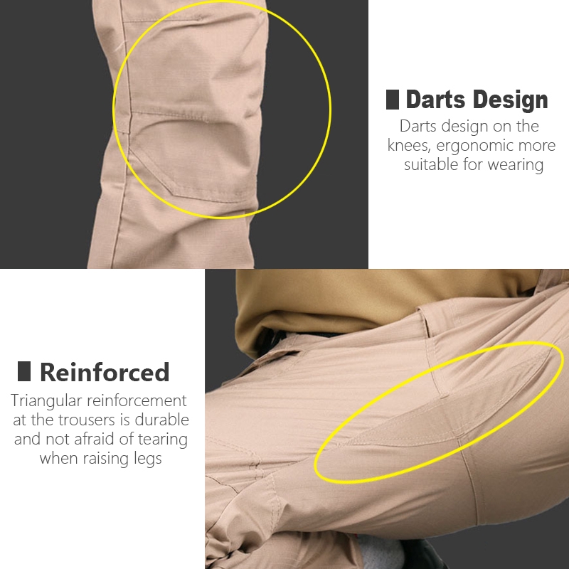 Material Quality:Durable Colour:Khaki & Grey Bought two pairs of pants: X7 Khaki and X9 Grey. Both come with multiple pockets and compartments for wallets, phones, keys, pens, small tools and whatever items you may have. There's also pockets which can be secured by either zippers and/or velcro. Really lives up to the description of tactical pants!