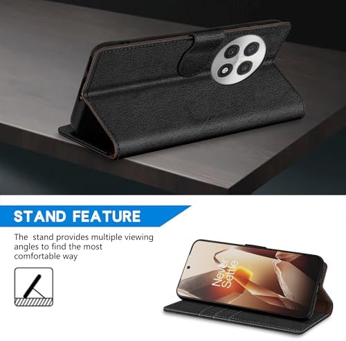 for OnePlus 13R Wallet Case with [RFID Blocking] Card Slot Kickstand Magnetic Closure Leather Flip Fold Protective Phone Case for OnePlus 13R Case Wallet(Black-6.78 inch)